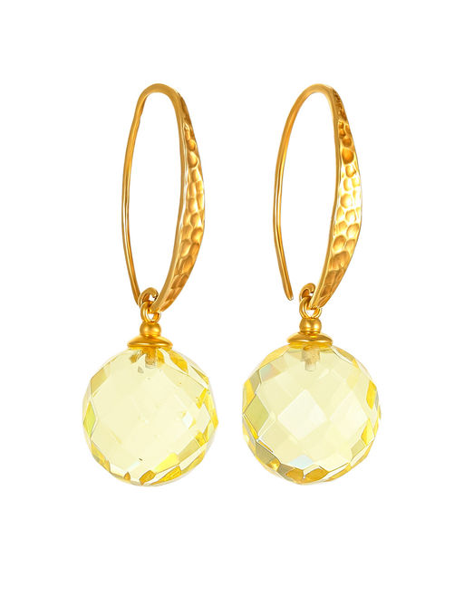 Оригинальные серьги-крючки с гранёными подвесками-шариками из янтаря Баккара