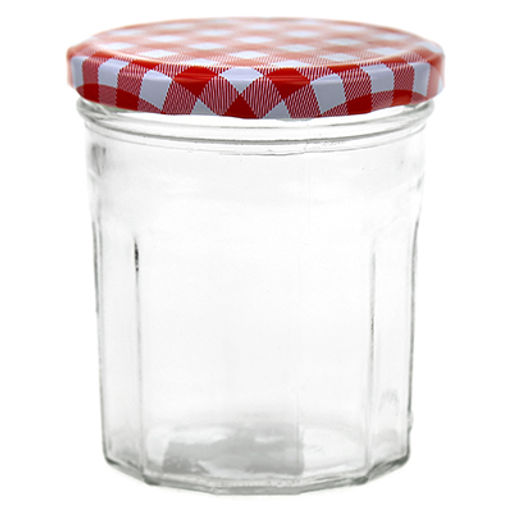 • Банка стеклянная с винтовой крышкой "Грани" 0,3л, h9,5см, цветная, металлическая крышка, диаметр горла - 6,8см, диаметр основания - 6,7см (Китай)