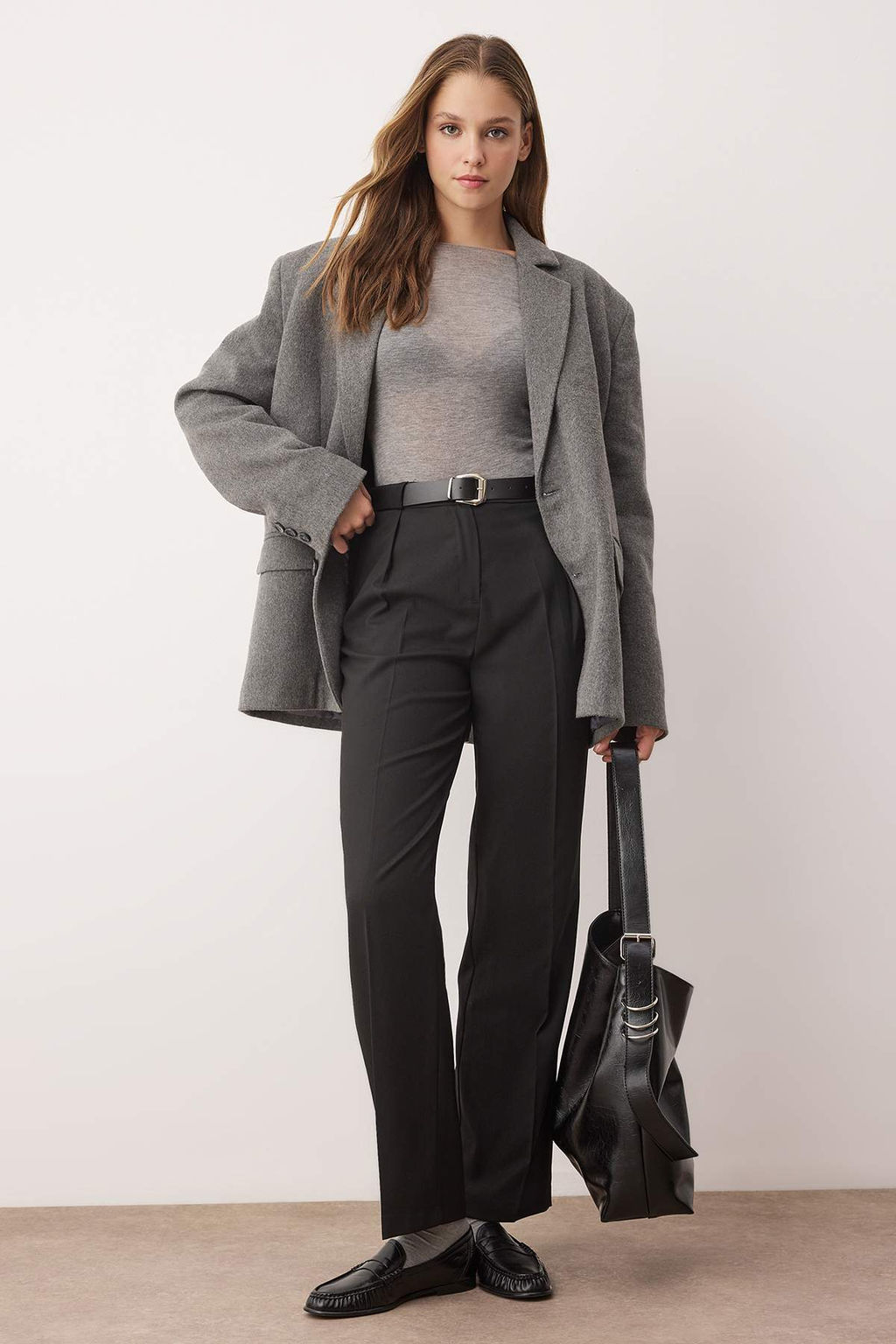 Siyah Kemerli Straigt/Duz Kesim Dokuma Kumas Pantolon TWOAW25PL00046