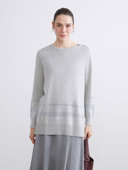 • Bisiklet Yaka ?izgili Kad?n Triko Kazak