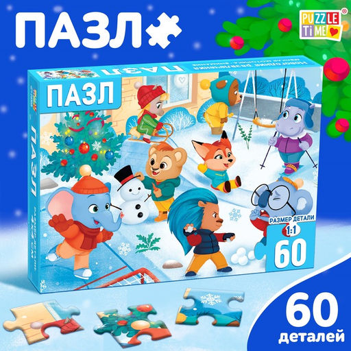 • Пазлы детские «Новогодние развлечения», 60 элементов
