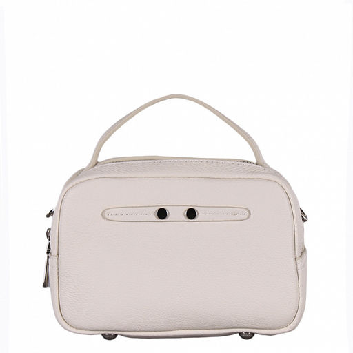 Модель кросс-боди, выполнена из натуральной кожи. Декорирована хлястиком на передней части. Дополнена серебристой фурнитурой. Данная модель закрывается на молнии. Каркас полужесткий. В комплекте съемный ремень с регулировкой длины. На дне предусмотрены ножки.