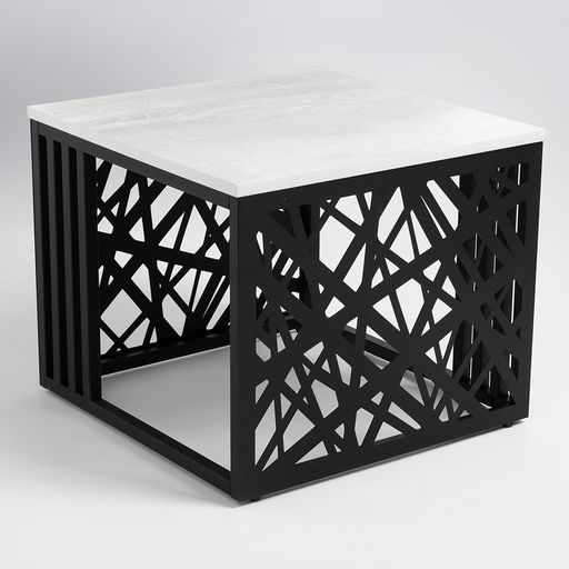 • СтЖ104 Стол журнальный, 51х51х42 см, ЛДСП белый пайн бетон, металл чёрный (цвет 06)