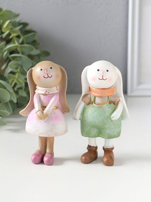 Набор фигурок 2 шт. полистоун «Зайчики-малыши нарядные», 5.5×3×9.5 см