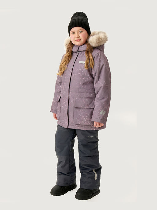 Описание товара Размер: 122-72, 128-72, 134-76, 140-80, 146-84 Сезон: ЗИМА Пол: Девочка Категория товара: ПЛЮС САЙЗ Цвет: орхидея/кофе Мембранная одежда: Да Ткань верха: МЕМБРАНА BREATEX Teflon WR 5000/5000 (100% полиэстер) Подкладка: флис + п/э (100% полиэстер) Температурный режим: от 0С до -25 С Утеплитель: fiberlite 250гр Мех опушки: искусственный