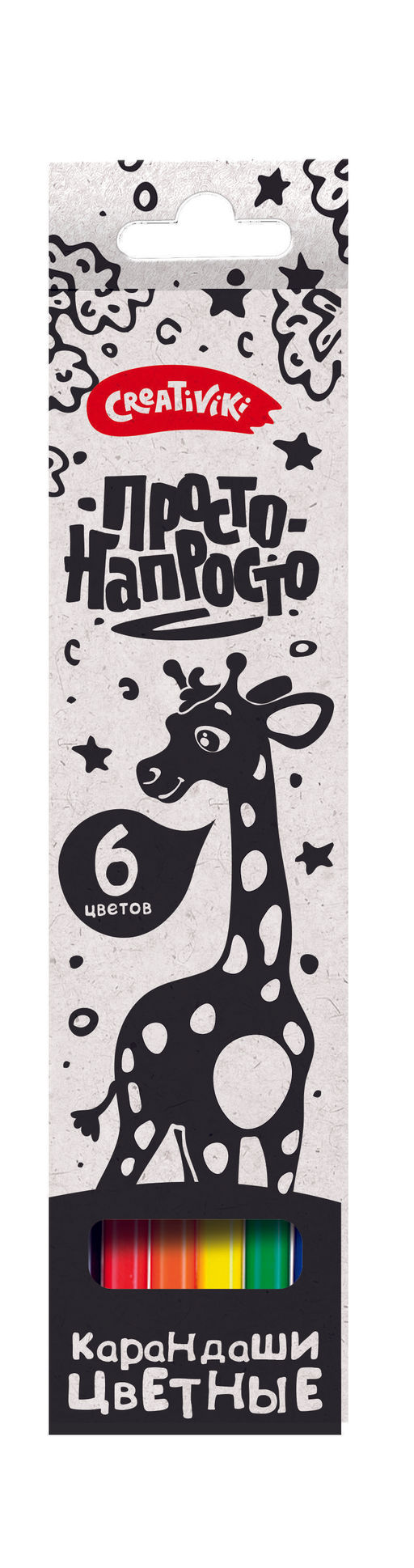 • Цена за 2 шт. Набор цветных карандашей Creativiki ПРОСТО-НАПРОСТО 6 цв. шестигранные, деревянные, в карт...