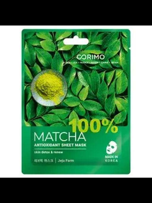 • Corimo Маска тканевая для лица "Антиоксидант" 100% MATCHA 22г (Ю. Корея)