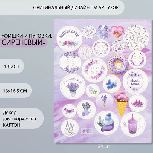 • Цена за 5 шт. Декор для творчества картон «Фишки и пуговки. Сиреневый», 24 шт., 13×16.5 см