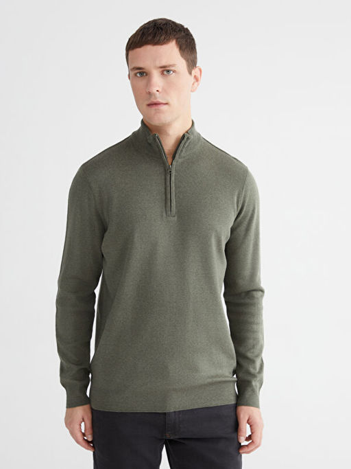 Fermuarl? Dik Yaka Erkek Triko Kazak