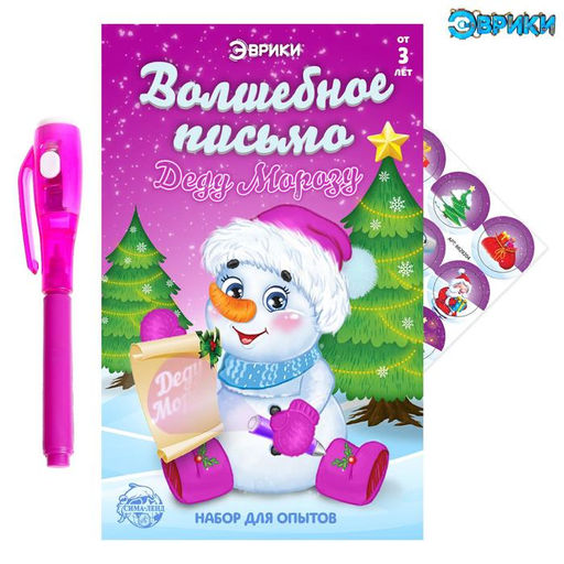 Набор «Волшебное письмо Деду Морозу: Снеговик» — это настоящая новогодняя магия для детей! С его помощью ребёнок сможет написать письмо Деду Морозу специальной ручкой с невидимыми чернилами. Письмо останется тайной, пока не проявится волшебным образом, создавая атмосферу чуда и предвкушения праздника.Что внутри?Ручка с невидимыми чернилами — текст проявляется только при ультрафиолетовом освещении.Красочный бланк для письма Деду Морозу и наклейки.Как это работает?Ребёнок пишет послание волшебной ручкой, но чернила остаются невидимыми. Чтобы увидеть письмо, нужно выполнить простой эксперимент — и вот оно, настоящее новогоднее чудо! Это занятие не только развеселит ребёнка, но и увлечёт его научным процессом.Польза и эмоцииРазвивает любознательность и интерес к науке.Развивает мелкую моторику и аккуратность.Создаёт волшебное настроение и делает подготовку к Новому году незабываемой.Отличный подарок и необычный способ написать письмо Деду Морозу.Этот набор подарит ребёнку веру в чудо и позволит почувствовать себя настоящим волшебником. Идеально для зимних вечеров в кругу семьи! Для кого: Для девочки. Возраст: От 3 лет. Тематика праздника: Новый год. Типоразмер батареек: LR44 (V13GA, AG13, LR1154, SR44). Назначение: Для рисования светом. Тематика набора: Опыты. Бесплатная доставка: Да. Наша разработка: Да. Размеры товара: 16/2/8.