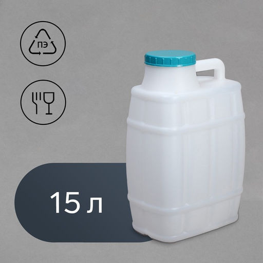 • Канистра пищевая «Бочонок», 15 л, горловина 11.4 см, пластиковая, белая