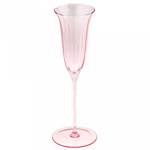 • Бокал стеклянный "Карамель" 130мл, д6,3см, h22см, для шампанского, волнистый край, розовый прозрачный (Китай)