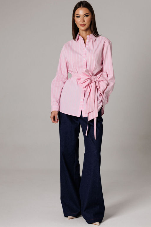 Состав: Рубашка: ПЭ-27%; Хлопок-71%; Эластан-2%; Брюки: ПЭ-26%; Хлопок-72%; Эластан-2%; Стильный гармоничный комплект, состоящий из свободной блузы рубашечного покроя и брюками из джинса. Блуза рубашечного покроя с втачным одношовным рукавом с манжетой. Спинка изделия состоит из горизонтальной кокетки и основной детали, на которой расположены две складки для свободы движения. Линия низа: фигурная. Рукав втачной, одношовный, с притачной манжетой, высотой 5,5 см и разрезом-планкой для петли/ пуговицы. Высота планки 11 см. Длина рукава в готовом виде 61 см. Горловина оформлена стойкой с рубашечным воротником. Застежка вертикальная на планках петли/пуговицы. Длина блузы по спинке 74-76 см (в зависимости от размерного ряда). Брюки комплекта созданы в свободном стиле из джинсовой ткани. Силуэт брюк к низу изделия имеет расклешение. В пояс брюк по спинке вставлена эластичная тесьма, шириной 3 см. Спереди пояс фиксируется горизонтально на петли/пуговицы и вертикальную закрытую клапан-молнию (гульфик). При желании в пояс можно вставить ремень, так как имеются шлевочные держатели. В боковых швах: карманы с наклонным входом, на поясной линии талии переда расположена неглубокая складка для свободы движения, на задних полотнищах линии талии: вытачки, также на задних полотнищах расположены накладные карманы. Длина брюк по боковому шву 108 см (без учета высоты пояса). По основным линиям изделия проложена декоративная строчка контрастного охрового тона. В комплекте присутствуют съемные текстильные дополнения: пояс и декоративная брошь в виде банта. (фурнитура может отличаться от представленной на рекламном фотоматериале) Особые рекомендации: рекомендуется холодная деликатная ручная стирка, без использования отбеливающих СМС, без интенсивного трения. Сушка в вертикальном положении. ВТО с минимальным паром. -- Характеристики -- Состав: Рубашка- ПЭ-27%; Хлопок-71%; Эластан-2%; Брюки- ПЭ-26%; Хлопок-72%; Эластан-2%; Сезон: Осень-Зима Рост: 164 Страна бренда: Беларусь