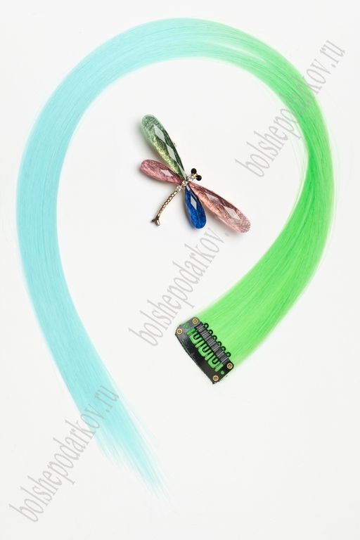 • Прядь волос двухцветная на заколке (6 шт) SF-3045, зеленый/голубой