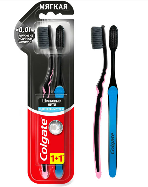 • КОЛГЕЙТ з/щетки "Шелковые Нити" с древ.углем мягкие 1+1