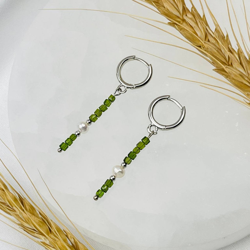 • Серьги длинные из Хромдиопсида и Жемчуга