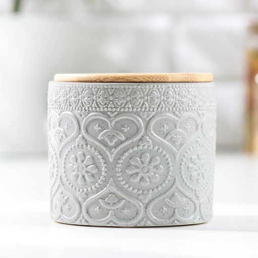 • Банка для сыпучих «Кружева. Сердца», 400 мл, 10×9.5 см, с бамбуковой крышкой, керамика, серая