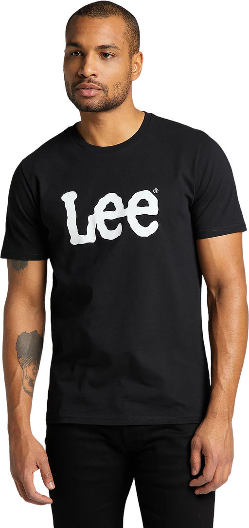 Мужская футболка Lee черного цвета. Выполнена из дышащего хлопка. Классический крой, круглый вырез горловины. Футболка украшена контрастынм белым принтом Lee.