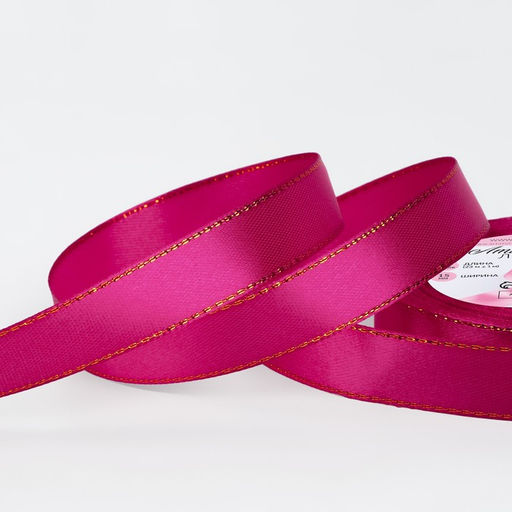 • Лента атласная, с золотым люрексом, 15 мм, 23±1 м, розовая №72