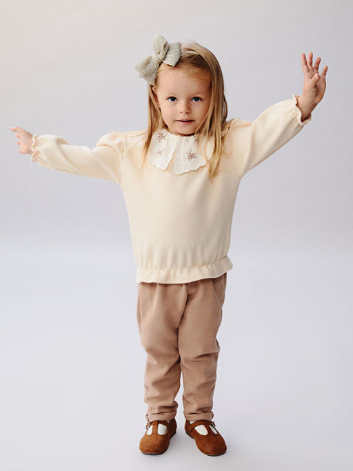 • Bebe Yaka Yumu?ak Dokulu K?z Bebek Bluz ve Tayt