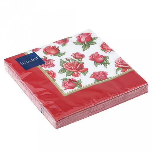 • Салфетки бумажные "Bouquet" 33х33см, 3-х слойные, 20 штук в упаковке, 100% целлюлоза, "Скатерть с красными розами" (Россия)