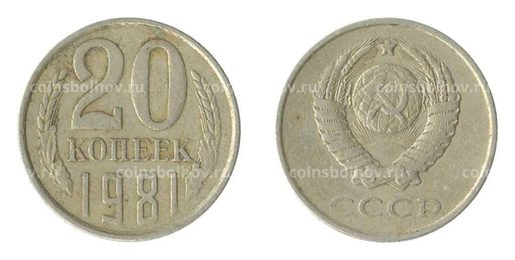 • Монета 20 копеек 1981 года Федорин Ф-143 (Аверс от 3 коп.)№0001-13699