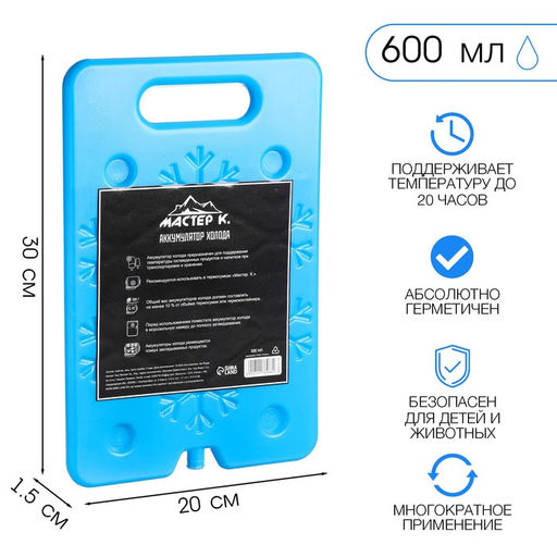 Описание товара Аккумулятор холода предназначен для поддержания низкой температуры в контейнерах из вспененных материалов, сумках-холодильниках и термопакетах. Он равномерно распределяет холод внутри термосумки, не протекает, обеспечивает долговременное охлаждение продуктов. Термоаккумулятор также используется медицинскими работниками и спортсменами для охлаждения отдельных участков тела при ушибах и гематомах, или для восстановления мышц после интенсивных тренировок. Криопакет актуален для хранения продуктов питания и напитков, когда предстоят продолжительные поездки или же отправка на пикник. А также, хранения лекарств, которые требуют пребывания в прохладной среде. Маленький охладитель прост в использовании: достаточно поместить его в холодильник или морозилку на 8-12 часов. После этого терморегулятор разместить в термосумке, контейнере, сумке-холодильнике, термопакете или аптечке. Количество элементов, необходимых для охлаждения, зависит от объемов аксессуара. На каждые 10 литров необходимо использовать 300-500 мл охладителя. Для отдыха на природе, путешествий на автомобиле, рыбалки, охоты, рюкзака – пригодится в самых разных ситуациях. Для дачи, садового домика, где нет полноценного холодильника, станет незаменимым решением. Длина, см: 30. Ширина, см: 1.5. Время сохранения тепла/холода, ч: 20. Объём, мл: 600. Вид: Твёрдый. Бесплатная доставка: Да.