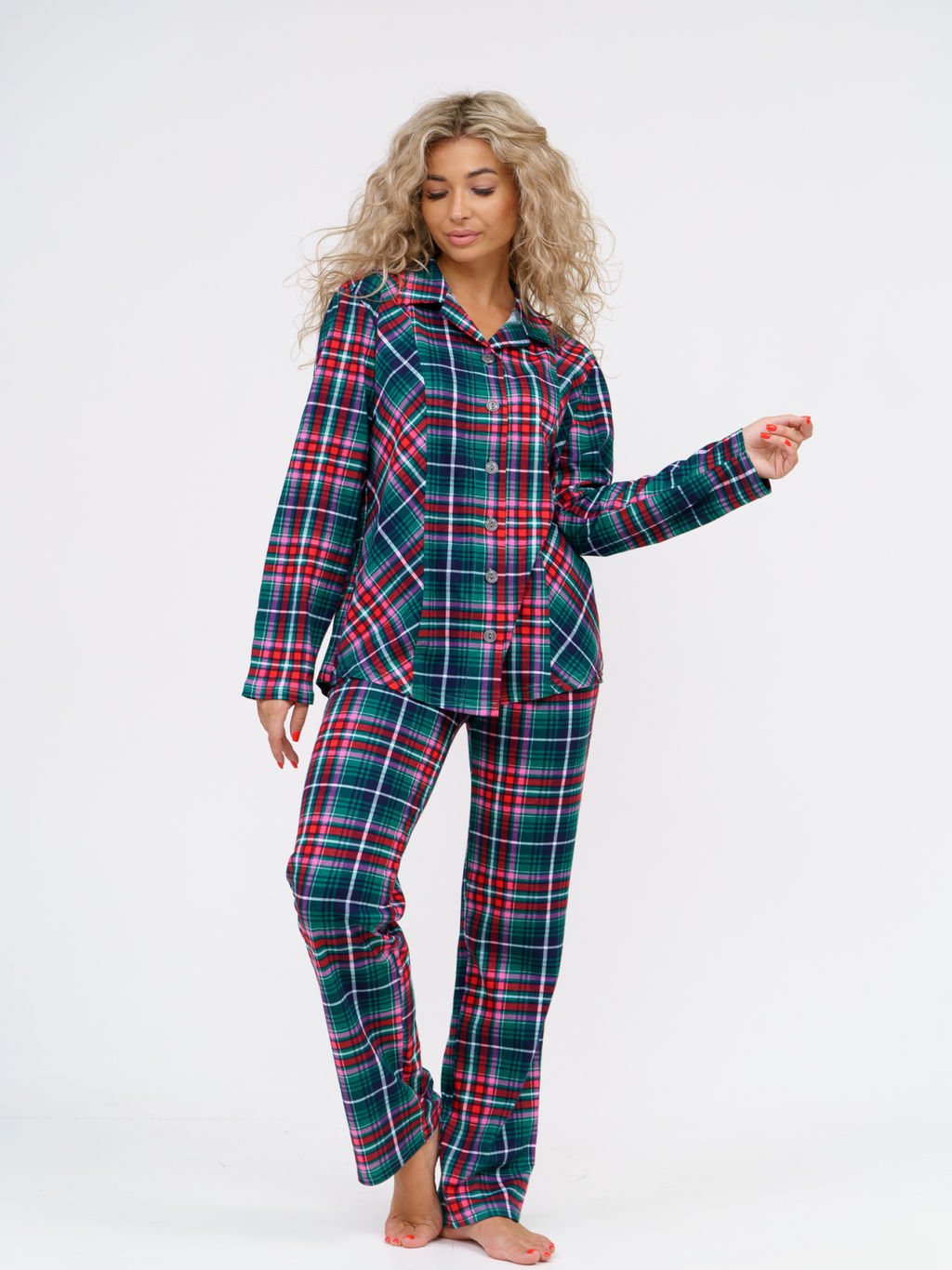 Элегантная клетчатая пижама с рубашкой и брюками идеальный комплект для уютного отдыха! Этот летний костюм из премиального 100% хлопка станет прекрасным дополнением вашего домашнего гардероба. Свободный оверсайз крой с продуманными деталями подчеркнет достоинства фигуры, мягко скрывая недостатки, что особенно оценят женщины в возрасте. Рубашка с классическим отложным воротником и аккуратными пуговицами выглядит стильно и женственно, становясь комфортной заменой кружевным сорочкам. Мягкие брюки с очень удобной резинкой на талии созданы специально для будущих и кормящих мам они не сдавливают живот, обеспечивая полную свободу движений. Подростки будут в восторге от модного клетчатого принта и современных дизайнерских решений. Широкий размерный ряд от самых маленьких до больших позволяет подобрать идеальную посадку на любую фигуру. Натуральный хлопок премиум качества нежно облегает тело, позволяет коже дышать, сохраняет комфортную температуру и абсолютно безопасен для чувствительной кожи. Идеально подходит для крепкого здорового сна, уютных семейных вечеров, романтических моментов и отдыха после напряженного дня. Практичная в уходе сохраняет форму и насыщенность цвета после множества стирок. Подарите себе удовольствие от истинного комфорта и стиля с этой роскошной пижамой!