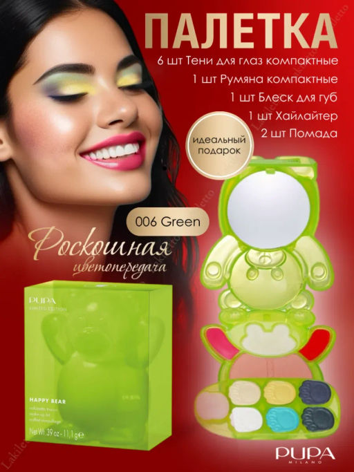 • PUPA Набор HAPPY BEAR тон 006 Синие и зеленые оттенки