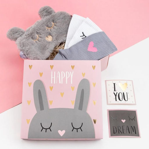 • Набор подарочный KAFTAN Happy, маска для сна, носки 3 пары, открытки 2 шт.