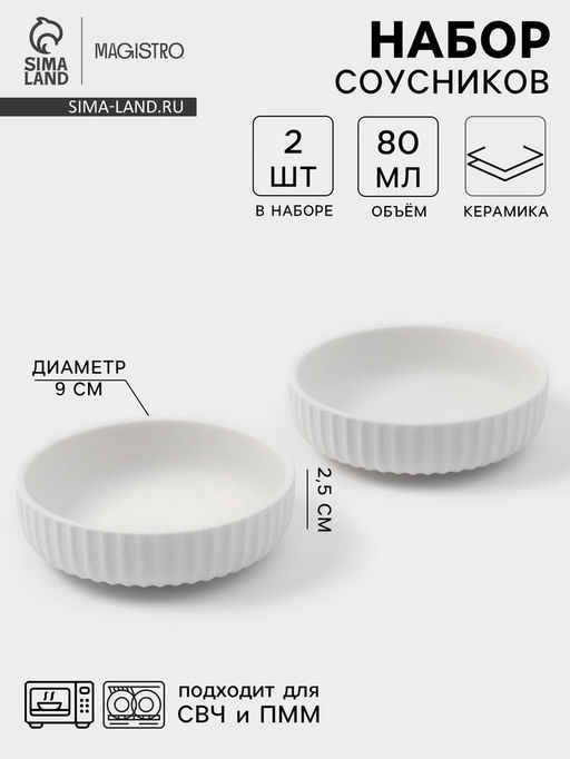 • Соусники Magisto Line, набор 2 шт., 80 мл, 9×2.5 см, керамика, белые