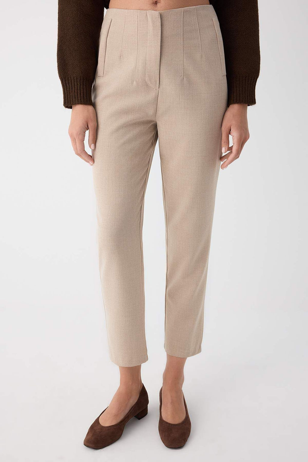 • Bej Cigarette Kal?p Pensli Yuksek Bel Bilek Boy Dokuma Pantolon TWOAW26PL00014