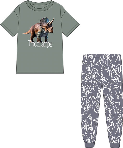футболка+брюки,хлопок 100%,кулир / хлопок 100%,- / серо-зеленый113+белые граффити на темно-сером+светло-серый183 / Трицератопс / - / - / -