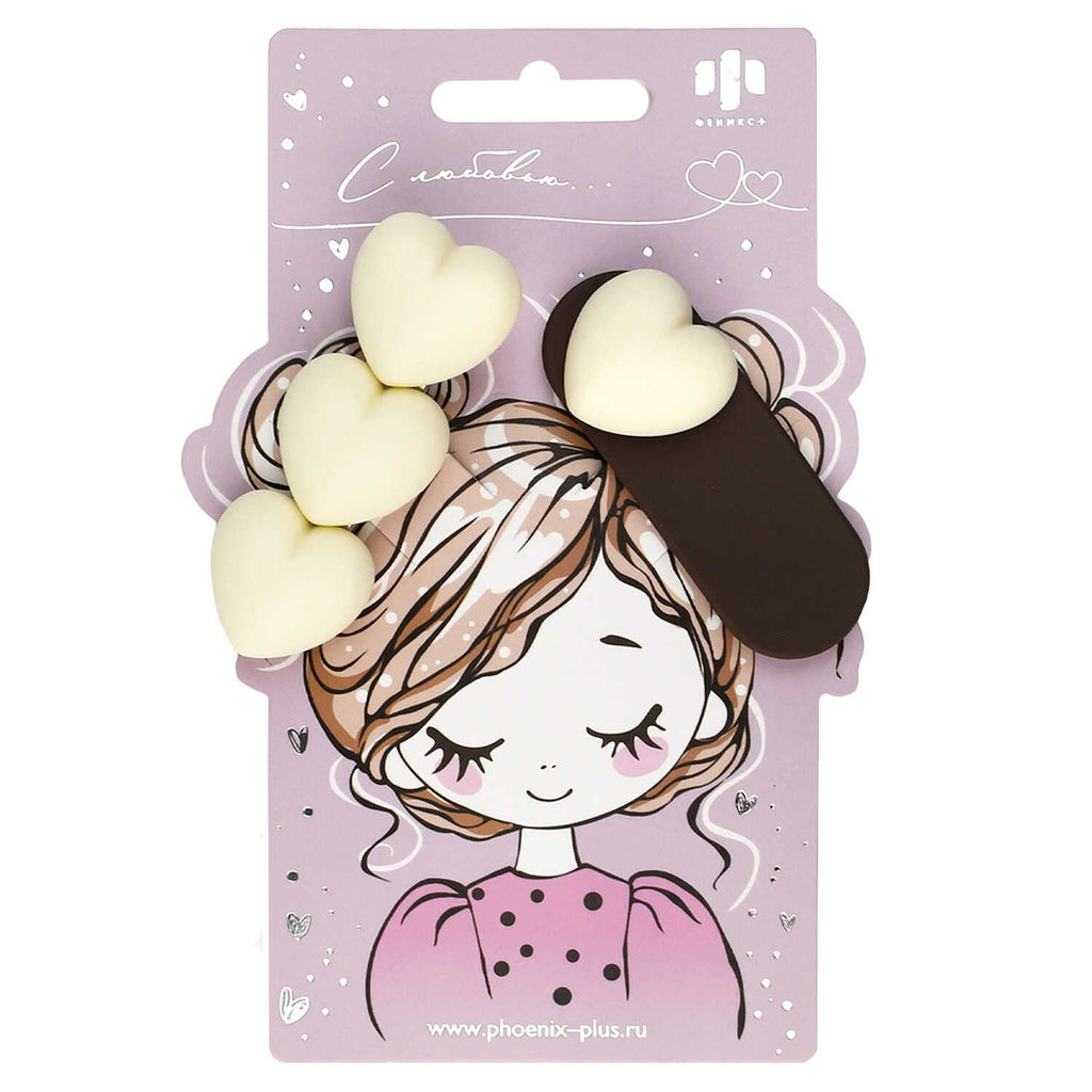 Набор заколок для волос клик-клак, зажим, софт-тач, арт. 71754 / 10 СЕРДЕЧКИ (в наборе: 2шт., 6,4; 6,7 см, черный металл, поликарбонат, полиэфирная смола, цвет: бежевый, коричневый, подложка из мелованного картона + ПЭТ-пакет с европодвесом)