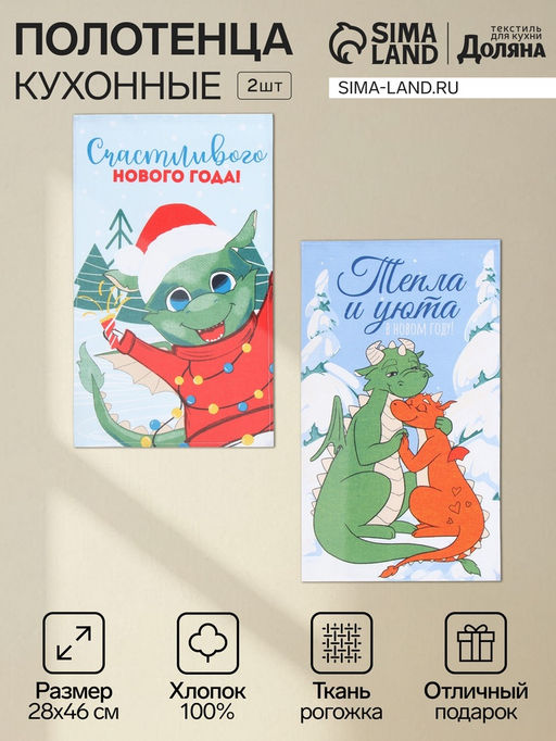 • Цена за 2 шт. Набор полотенец «Доляна. Дракончики», 28×46 см - 2 шт., 100% хлопок, рогожка 164 г/м²