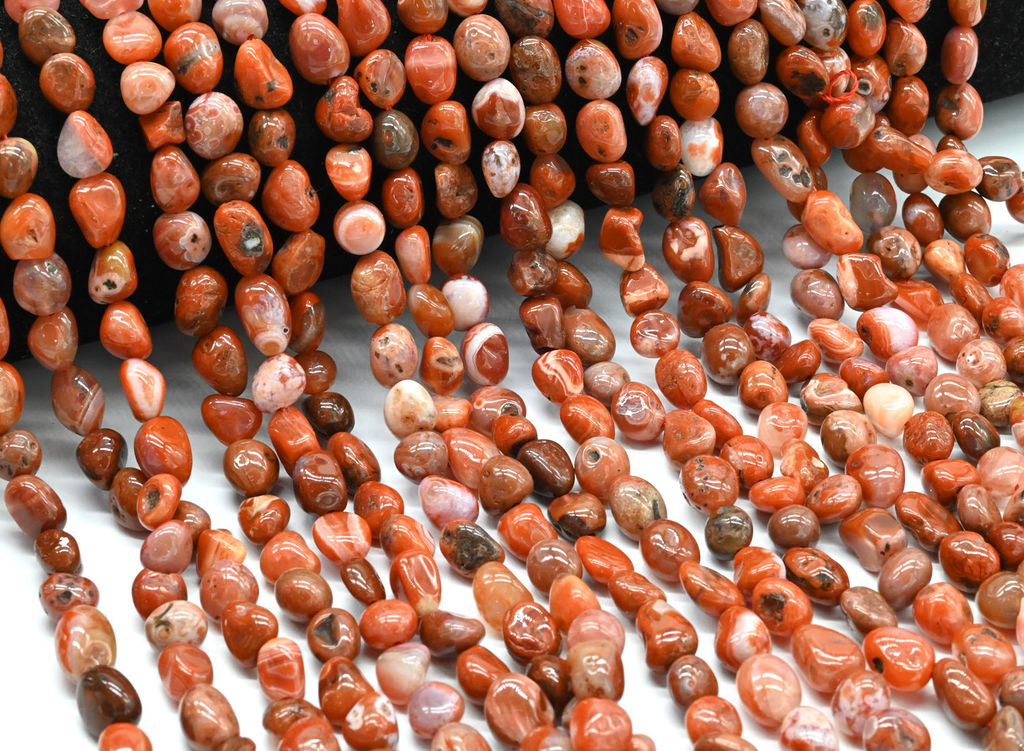 • Бусины из агата огненного галтовка 6*9мм, 40см, 45 бусин Радуга камня