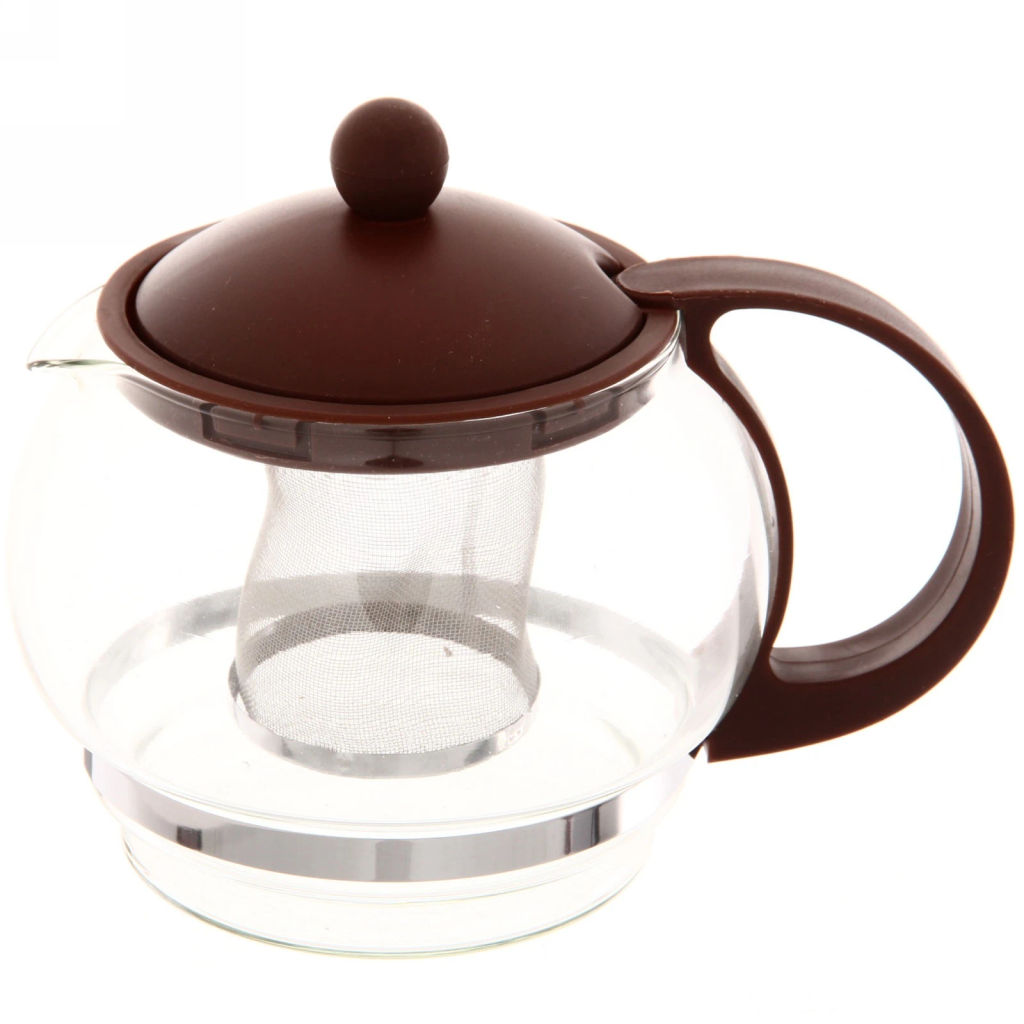 Чайник заварочный стеклянный 600 мл с металлическим ситом круглый