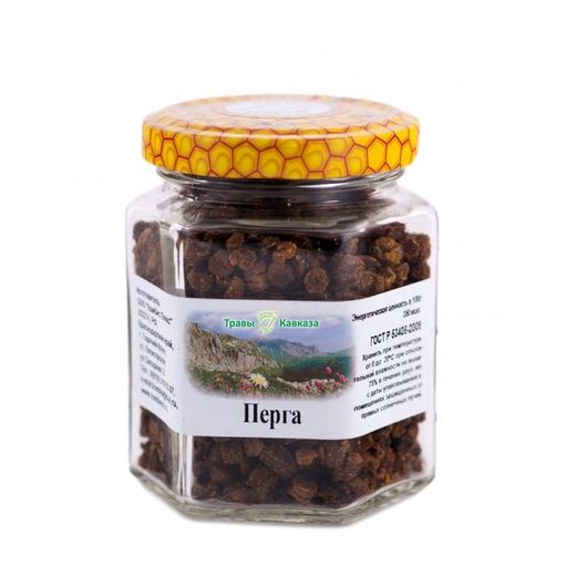 Перга - законсервированная медоферментным составом пчелиная обножка (цветочная пыльца), сложенная и утрамбованная пчелами в соты, прошедшая молочнокислое брожение, в процессе которого пыльцевые зерна прорастают и превращаются в пергу. Обладает характерным кисловато-горьким, несколько вяжущим и терпким вкусом, что особенно нравится потребителям. Перга содержит аминокислоты, витамины и ферменты, обладающие высокими антимикробными свойствами и биологической ценностью. Перга рекомендуется при гепатитах, гастритах, колитах, язве желудка и двенадцатиперстной кишки, нарушении потенции, мужском бесплодии, анемии, гриппе, псориазе, герпесе, инфарктах, инсультах, нейродермите, экземе, нарушении мозгового кровообращения, сердечной недостаточности, алкоголизме, наркомании, патологии беременности, черепно-мозговых травмах, слабоумии, потери памяти, гинекологических заболеваниях. Перга восстанавливает микрофлору и слизистую кишечника, улучшает мозговое кровообращение при любых формах инсульта, а также при черепно-мозговых травмах, стабилизирует иммунную систему, применяется для повышения потенции, лечения мужского бесплодия, аденомы простаты, оказывает благотворное влияние на состояние здоровья беременных женщин и развитие плода, применяется для предотвращения токсикозов и выкидышей, в послеродовой период перга способствует восстановлению потери крови и сил роженицы, улучшает лактацию, рекомендуется в послеоперационный период, для быстрого восстановления организма.