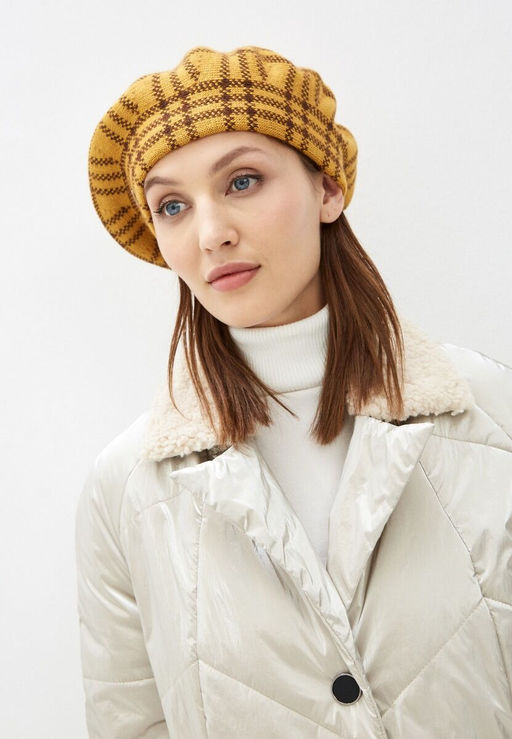 Трикотажный берет горчичного цвета с коричневым рисунком-отличная замена шапке в осенний период. Берет достаточно объемный и имеет диаметр дна- 27см, глубину- 20 см. Подойдет для 52-58 размера головы. Наличие пуха кролика в составе аксессуара придает ему мягкость и нежность. Он подчеркнет идеальный вкус своей обладательницы.
