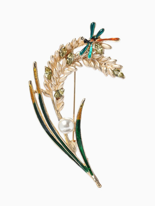 • Брошь «Колосья» пшеницы, жемчуг, цветная в золоте