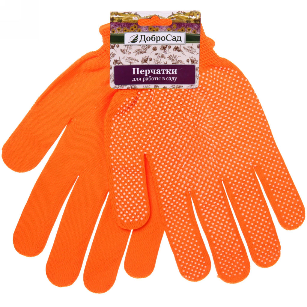 • Цена за 5 шт. Перчатки нейлоновые "Классика" с ПВХ покрытием оранжевые 8 р-р ДоброСад
