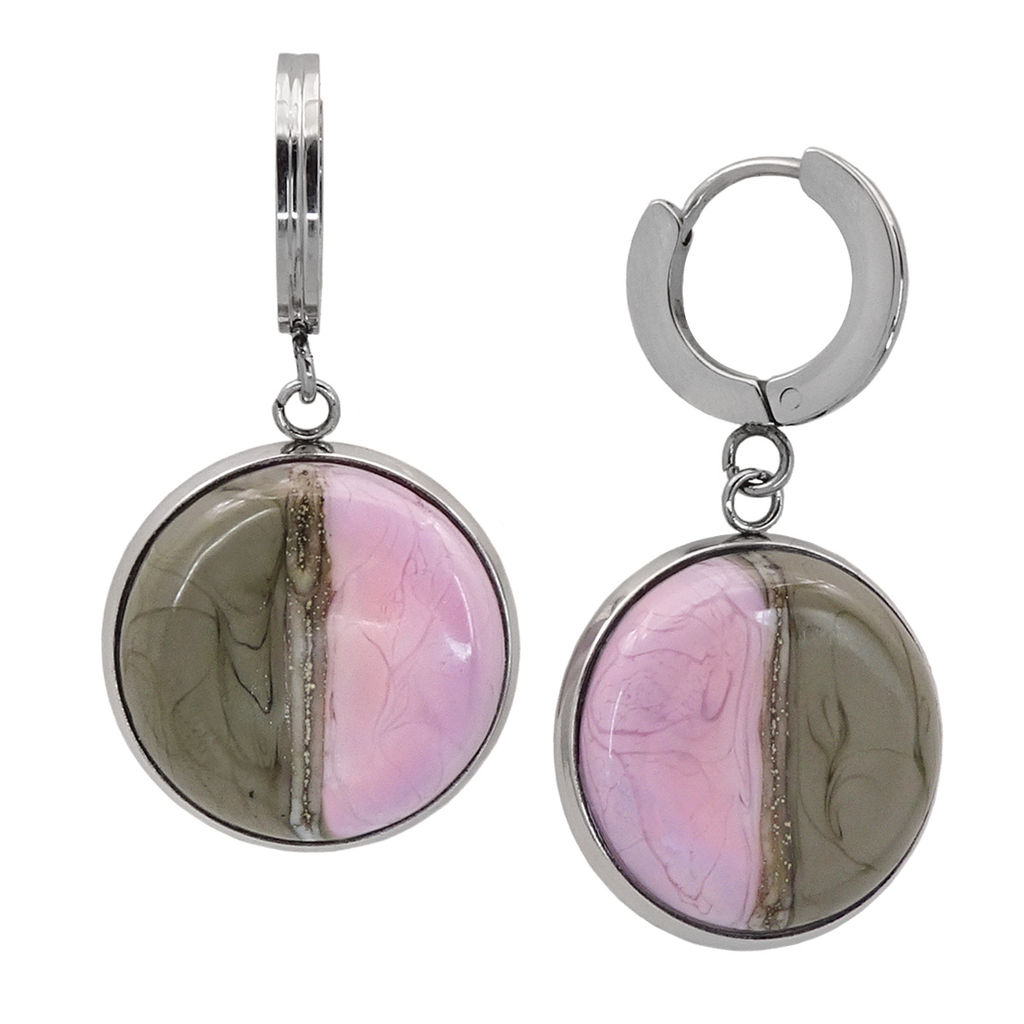 Серьги изготовлены из муранского стекла и гипоаллергенной ювелирной стали, что очень важно для людей с чувствительной кожей. Металл не темнеет и не подвергается воздействиям окружающей среды, надолго обеспечивая красивый внешний вид изделия. Длина серег - 4 см. Диаметр стеклянного элемента - 2 см.  Вес обеих серег - 12 гр.