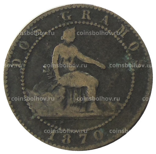 • Монета 2 сентимо 1870 года Испания