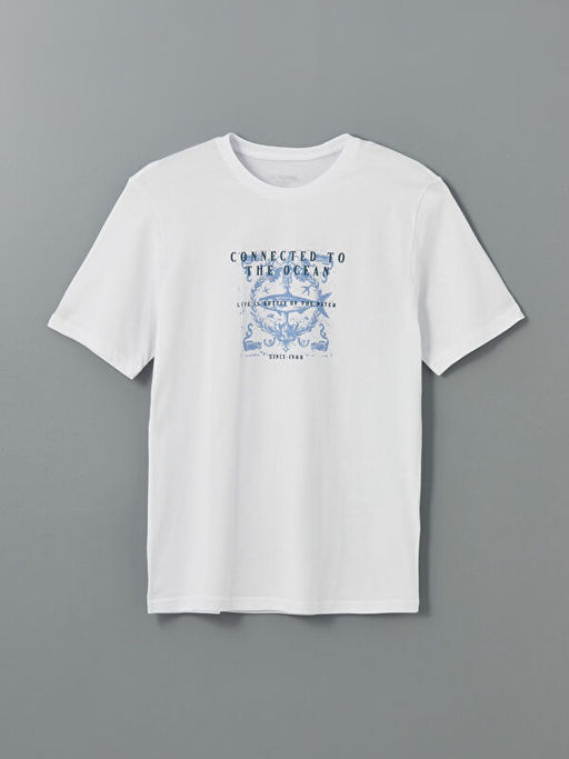 Bisiklet Yaka Bask?l? Erkek Ti??rt