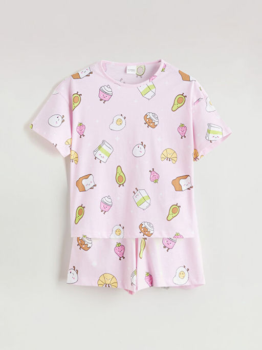 • Bask?l? K?z ?ocuk ?ortlu Pijama Tak?m?
