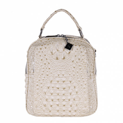 Рюкзак-трансформер, выполнен из экокожи. Декорирован фактурой под крокодила. Дополнен серебристой фурнитурой. Данная модель закрывается на молнии, носится в руке или на плече. В комплекте есть съемные ремни с регулировкой длины. Каркас жесткий.