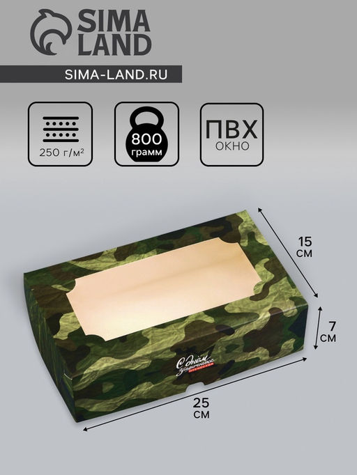 • Цена за 5 шт. Коробка подарочная складная с окном, упаковка, С Днем защитника Отечества, 25?15?7 см