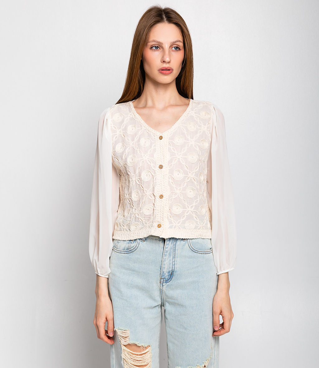 Эта Блуза идеальный выбор для вашего магазина, предлагающий стильный и универсальный элемент гардероба для весеннего сезона. V-образный вырез на блузе, который визуально удлиняет шею и акцентирует внимание на декольте. Рукава слегка объемные, собранные на манжетах, что добавляет изящества и женственности. Свободный крой, который не сковывает движений и подходит для разных типов фигуры. Верхняя часть украшена тонким кружевом, создающим романтичный и элегантный образ. Ткань из 15% полиэстера и 85% хлопка является качественной и приятной на ощупь, а свободный крой обеспечивает комфорт при носке, позволяя чувствовать себя уверенно в течение всего дня. Эта Блуза станет универсальным элементом гардероба, который легко сочетать как с брюками для создания делового образа, так и с джинсами для более повседневного и расслабленного стиля. На странице сайта доступна таблица размеров, что поможет вашим покупателям быстро найти идеальный вариант. Предложенная цена делает ее доступной для широкой аудитории, что повышает интерес к этой модели. -- Характеристики -- Цвет: светло-бежевый Пол: Женский Страна производитель: Китай Сезон: Весна Материал: Хлопок, Полиэстер