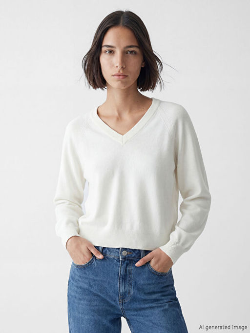 V Yaka Kad?n Triko Kazak