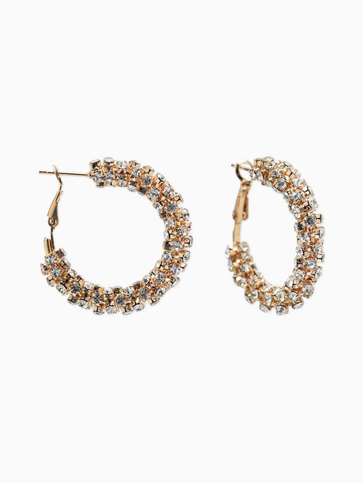 • Серьги-кольца со стразами "Россыпь" d=3,5см, цвет белый в золоте